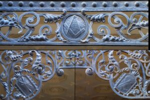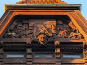 U szczytu owego wykusza umieszczone zostały trzy twarze – w centralnym polu podobizna Świętego Józefa, patrona cieśli, a poniżej geniusza renesansu Leonarda da Vinci i mistrza odlewnictwa z Norymbergi Petera Vischera.