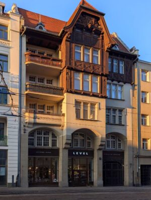 Zaprojektowali ją prężnie działający architekci Herman Böhmer i Paul Preul, autorzy budynku Teatru Nowego czy secesyjnej zabudowy wzdłuż ulicy Roosevelta. Ci dwaj członkowie poznańskiego cechu budowlanego, projektując budynek przy Mielżyńskiego, intencjonalnie nawiązywali do kamienic Norymbergii, Strasburga i Brunszwiku. Nie znajdziemy drugiego takiego w Poznaniu!