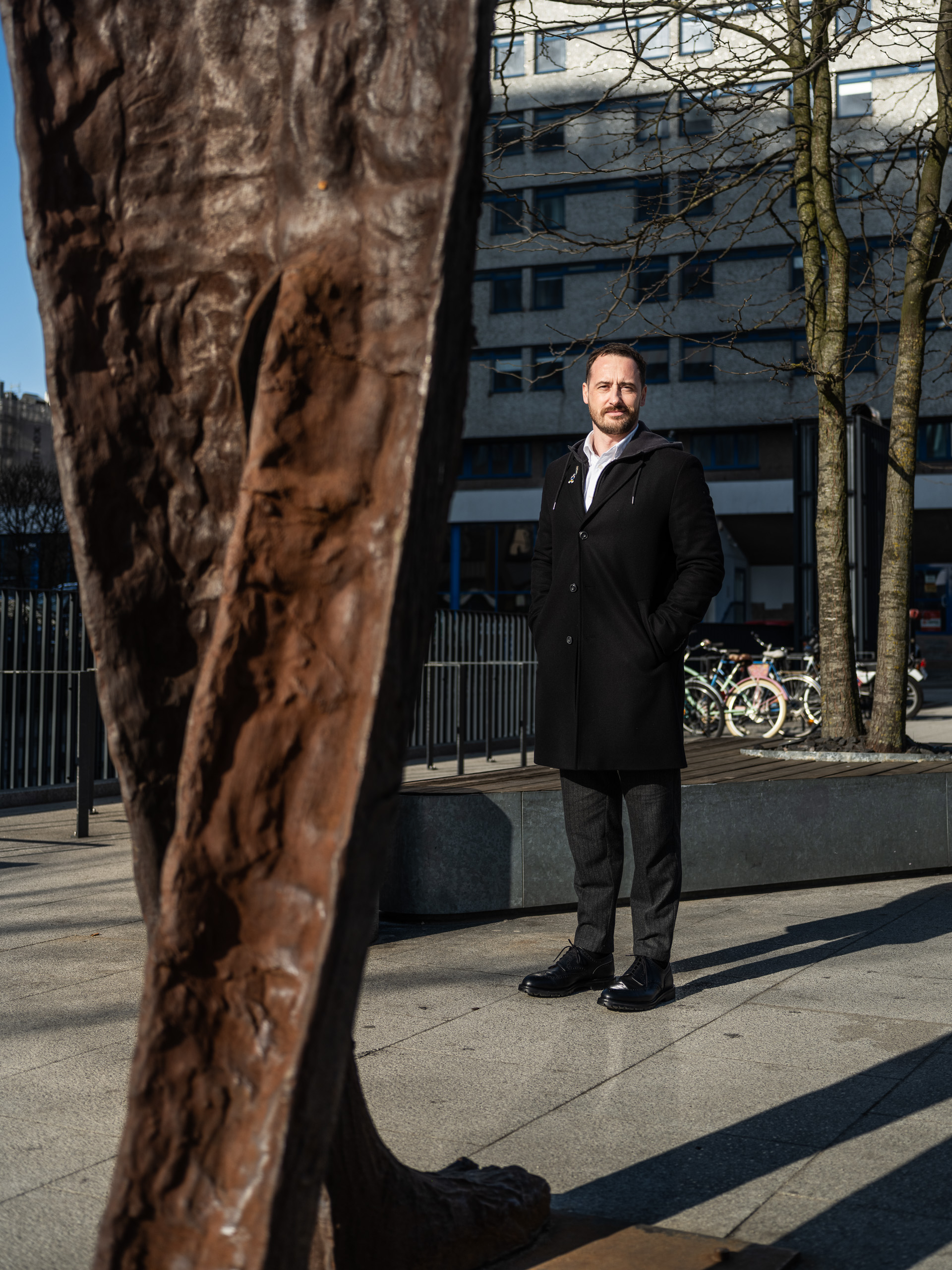 Grzegorz Jura i rzeźba Magdaleny Abakanowicz | foto Michał Sita