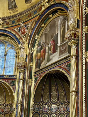 I naturalnie łączony był z wczesnośredniowieczną epoką. Kaplica była więc „autentyczną” kaplicą królewską z czasów pierwszych Piastów, dopełnioną narodowymi wątkami. Autorem projektu, który powstawał pod ideowym kierownictwem Edwarda, był krakowski architekt Franciszek Maria Lanci. Malowidła sklepienia przedstawiające polskich świętych wykonał Heinrich Müller, obrazy Mieczysław I kruszący bałwany i Bolesław Chrobry i Otton III u grobu św. Wojciecha namalował January Suchodolski i Edward Brzozowski, a mozaikowy obraz w ołtarzu głównym – według Tycjana – oraz mozaikową posadzkę zaprojektował Liborio Salandri z Wenecji.