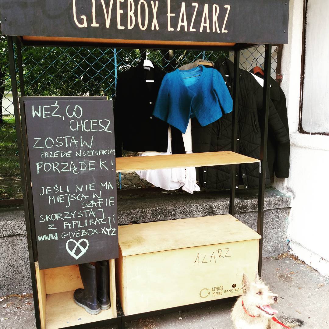 Najpierw były giveboxy – ogólnodostępne szafy do wymiany ubrań, które po 2016 roku zaczęły wyrastać w Poznaniu niczym grzyby po deszczu. – Chcieliśmy, aby były demokratyczne i dostępne dla wszystkich przez całą dobę, tak, aby ktoś, kto wstydzi się oceny innych, mógł przyjść anonimowo, kiedy chce i zabrać rzecz, której naprawdę potrzebuje – opowiada Wągrowska. Pierwsza szafa powstała na Jeżycach, a kolejne na Łazarzu, Wildzie, w Bramie Poznania i na Piątkowie. Dom Kultury postawił jedną w Suchym Lesie, a w międzyczasie kolejna pojawiła się także na osiedlu Kopernika.