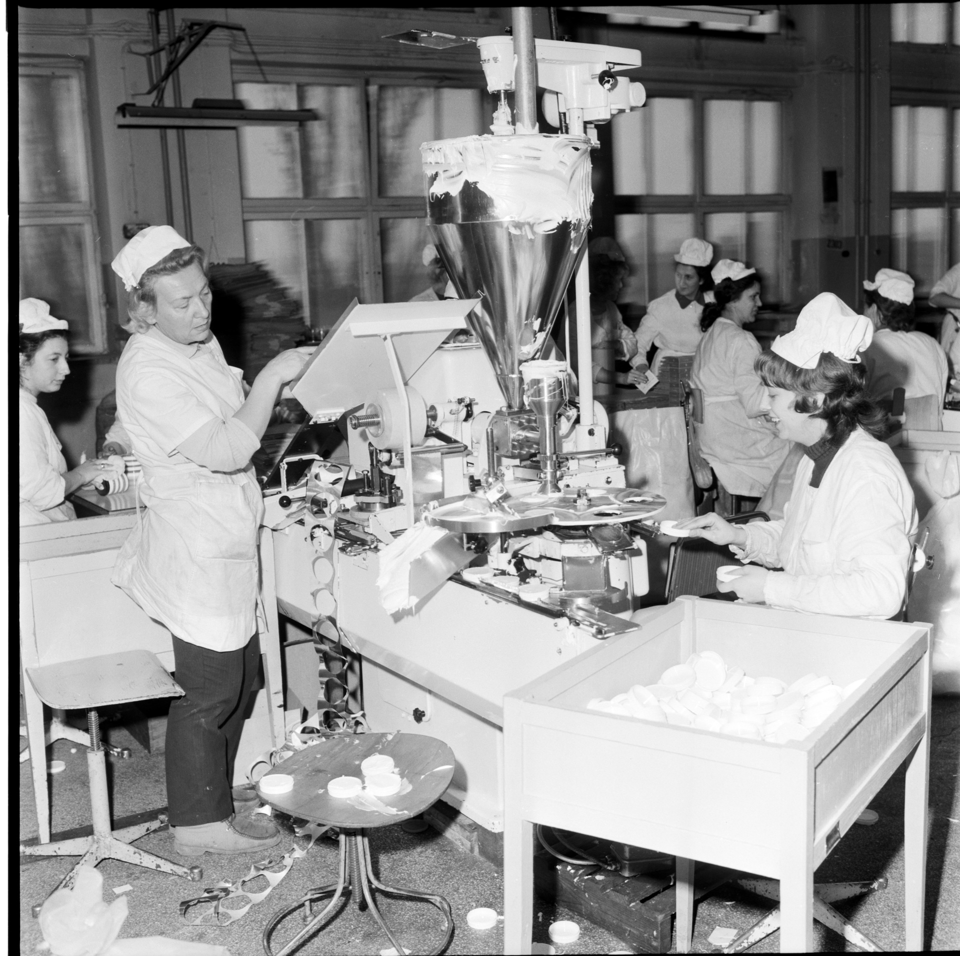Linia produkcyjna w Fabryce Kosmetyków Pollena-Lechia (obecnie Nivea Polska sp. z o.o.), Poznań, ul. Chlebowa, 25.01.1974 | foto Stanisław Wiktor | cyryl.poznan.pl