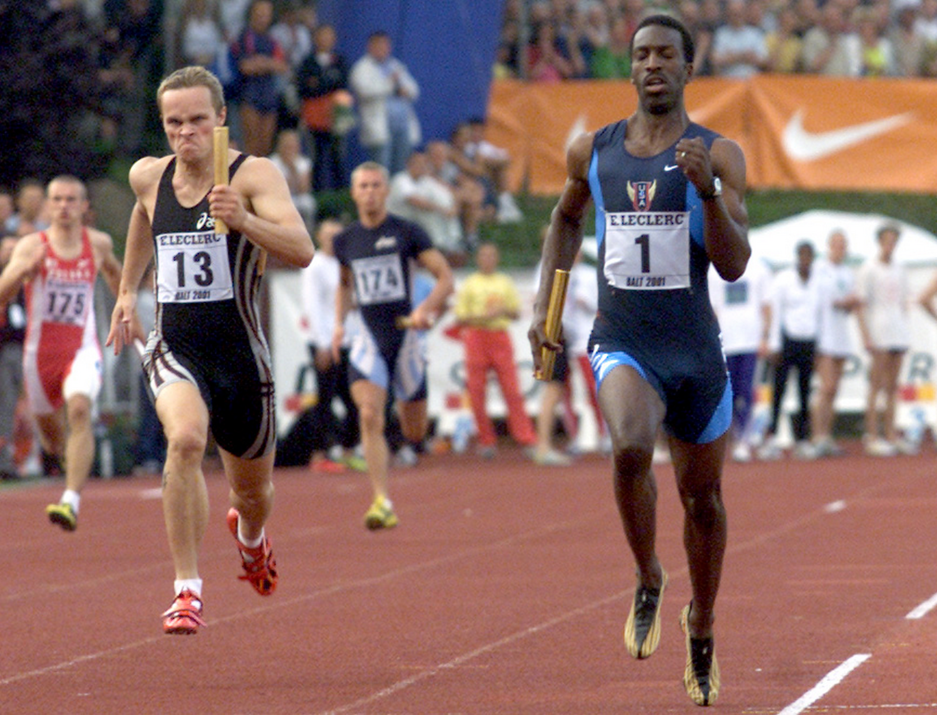 Marcin Urbaś i Michael Johnson podczas biegu sztafetowego w Baulmes, 2001 | foto arch. Marcina Urbasia