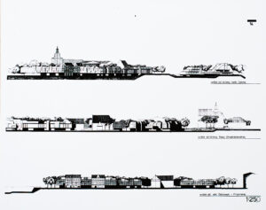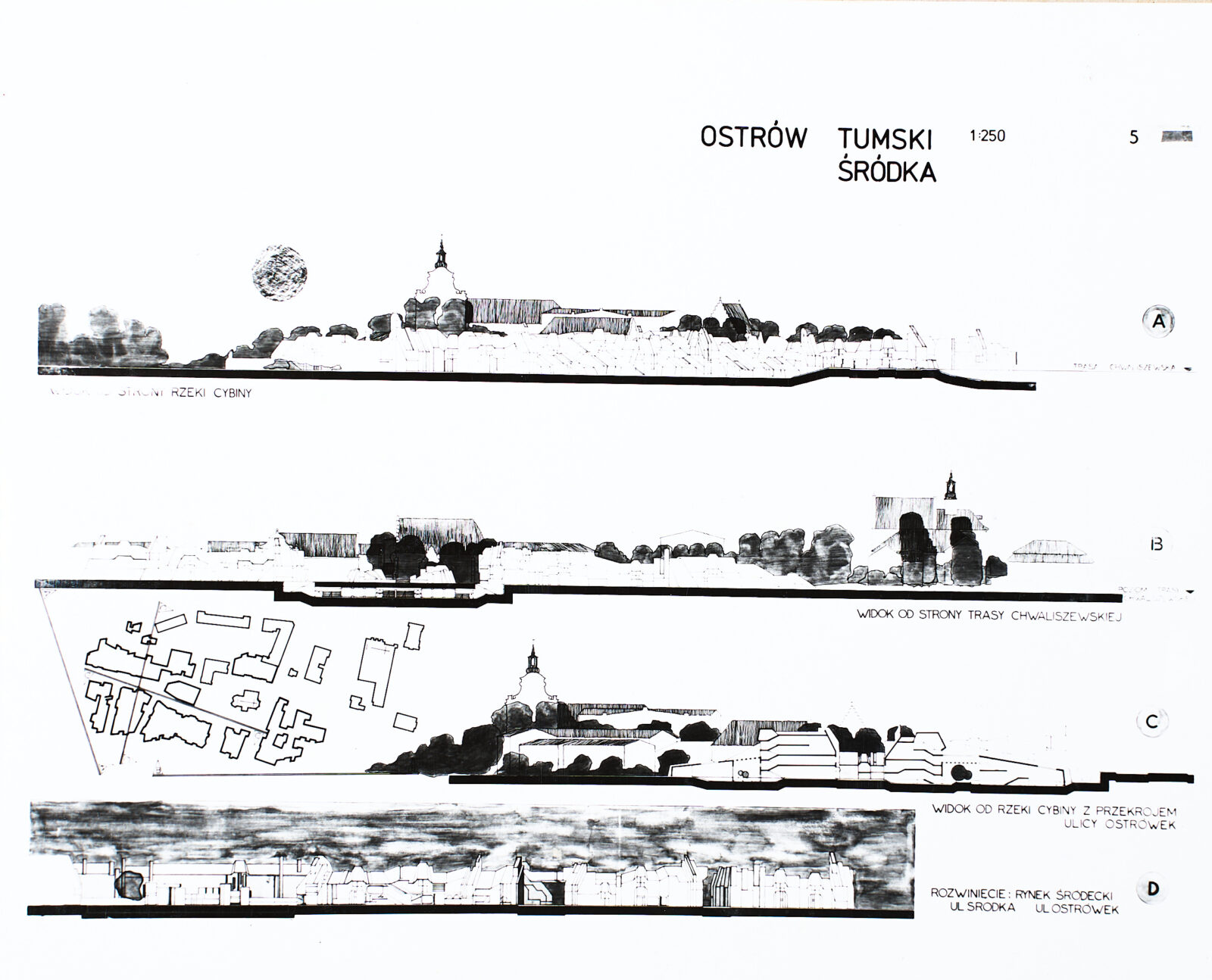 Samą Śródkę architekci zagęścili współczesnymi budynkami nawiązującymi do historii. O blokach – na szczęście – nie było mowy. Jurorzy mieli jednak zastrzeżenia do zbyt dużej skali centrum usługowo-rekreacyjnego między Śródką a Maltą. Ich zdaniem nowe budynki zbyt silnie konkurowałyby z katedrą i kameralną zabudową Środki. Docenili za to, że architekci zachowali więcej starej architektury, niż wymagały warunki konkursu. Pamiętajmy, że w tamtym czasie kamienice z przełomu XIX i XX wieku nie były chronione i poważane. W kolejnych nagrodzonych pracach wiele kwartałów zabudowy architekci wymieniali na nowe zespoły domów. Owszem, miały strome dachy i zróżnicowane elewacje, ale – sądząc po szkicach – bywały powtarzalne lub bliżej im było do postmodernistycznych plomb, które powstały w Poznaniu w latach 80. Nie doszło za to do większych ingerencji w tkankę Ostrowa Tumskiego, z wyjątkiem nowych zespołów zabudowy przy ulicy Zagórze. Sąd konkursowy komentował, że przestrzeń ta jest bardziej wymagająca i jej projektowanie wymaga głębszych analiz oraz badań, w tym archeologicznych.