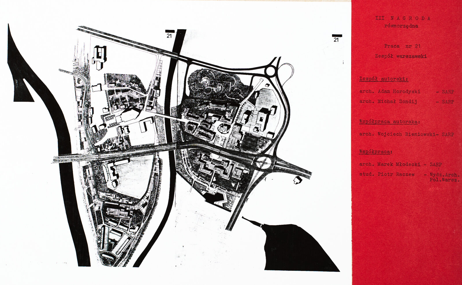 Konkursowy plon był obfity. Nadeszło trzydzieści prac, z których sąd konkursowy wybrał dziewięcioro finalistów. Pierwszej nagrody nie przyznano, były za to dwie równorzędne trzecie i czwarte, do tego jeszcze cztery wyróżnienia. Drugą, najwyższą pozycję zajął zespół, który tworzyli warszawscy studenci Jacek Frelek, Wojciech Hermanowicz, Witold Szymanik i Adam Tomiczek.