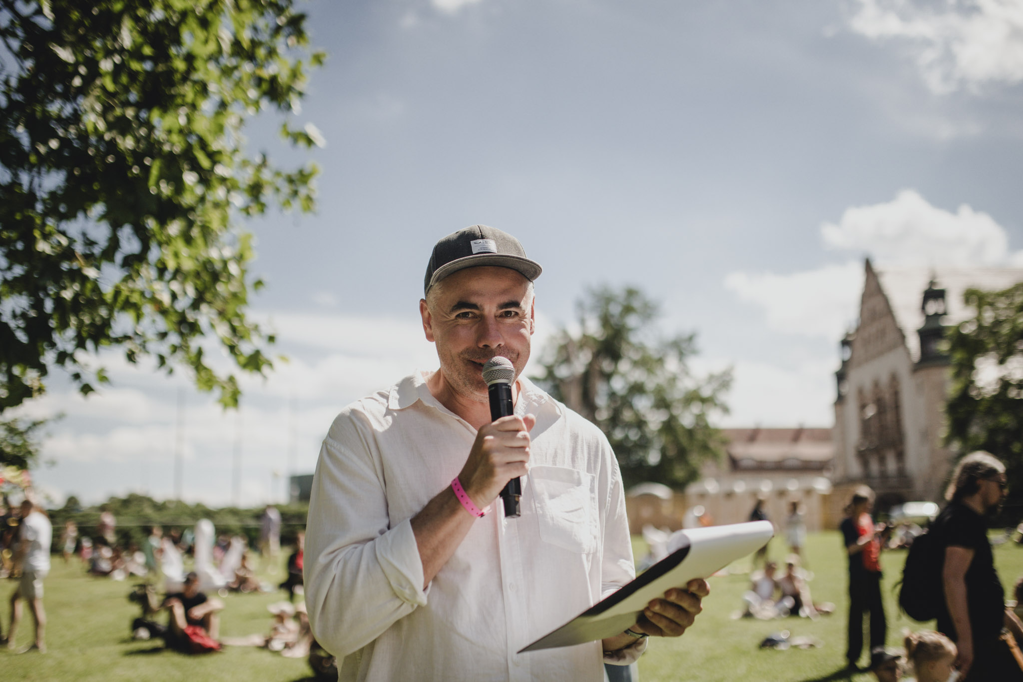 Marcin Głowiński podczas audiodeskrypcji na Ethno Port | foto Piegowate Kadry