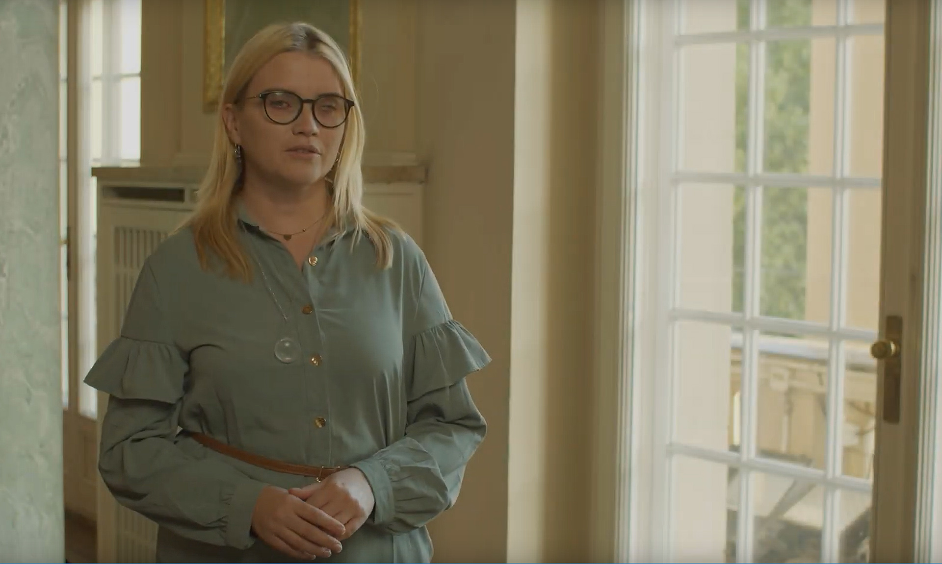 Magdalena Orzeszko, konsultantka audiodeskrypcji tańca, w trakcie prób do spektaklu „Łabędzie” w Teatrze Wielkim w Poznaniu | foto kadr z filmu [Making of] „Łabędzie – Uczestniczki” | Teatr Wielki w Poznaniu