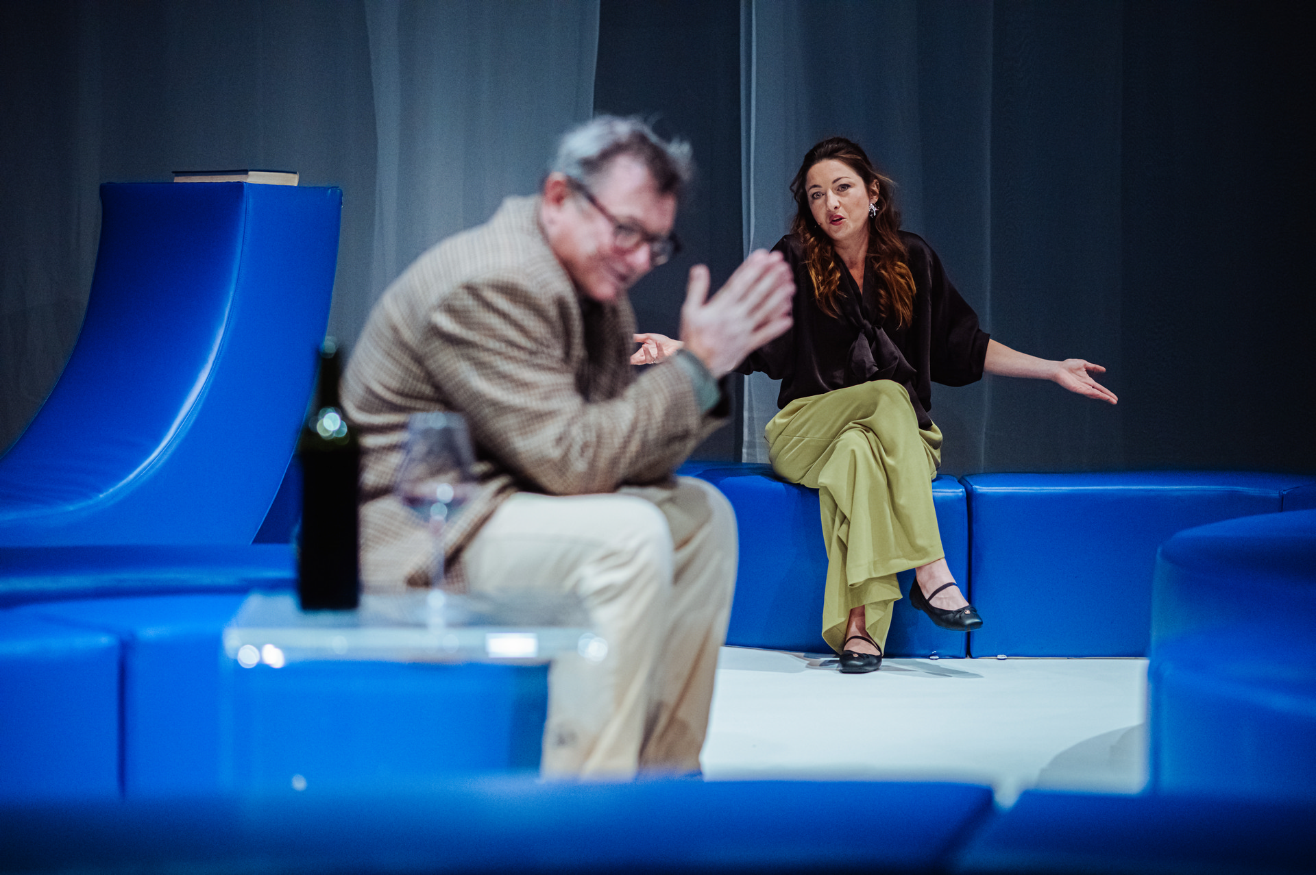 Wszystko to dzieje się na scenie Nowego, gdzie salonowa rozmowa o niczym, zaczyna wtem eskalować, powodując, że tak zwana ważna sprawa szybko grzęźnie w pyskówce prywatnych pretensji i plątaninie kłamstw, powodując nerwowe spoglądanie na siebie widowni, próbującej desperacko na twarzach innych wyczytać po czyjej są stronie. Dodajmy, że ani autor tekstu, ani reżyser nam tego nie ułatwiają, tak prowadząc aktorów, byśmy coraz bardziej zdezorientowani sami chcieli sięgnąć po butelkę wina, która tak bezsensownie rozlewana jest na scenie. Nie znajdziecie tu, drodzy widzowie, porządnie wyciosanego szwarccharakteru i ofiary, winnej i niewinnej, dobrego i złego. Nie możecie za szybko przywalić nikomu, jak to lubicie robić w soszialach – ani lajkiem, ani dislajkiem.